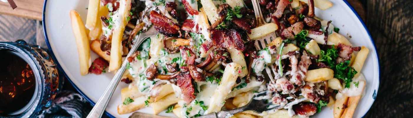 I know, what could be better that a steaming plate of fries, gravy and cheese curd? Fries, gravy, cheese curd and bacon, that’s what! Throw in some fresh shallots, chilli, and a splash of roasted bone marrow and duck gravy, and we turn this popular French-Canadian dish into a something sublime.